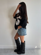 Hoe leuk zijn deze laarzen voor een festival of voor dagelijkse lookjes?! Ze zijn lekker chunky en staan perfect onder onze skorts.
