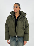 CROPPED TIE UP PUFFER ARMY