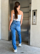 Eindelijk hebben we weer een leuke stretch jeans collectie. Deze jeans bevat super veel stretch en heeft gaten op beiden knieën. Het model is high waist.