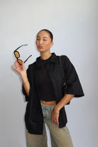 PRIORITY AMSTERDAM BOYFRIEND BLOUSE ALL BLACK