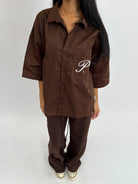 PRIORITY AMSTERDAM BOYFRIEND BLOUSE BROWN/WHITE