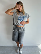 DOUBLE WAIST STRETCH JORT GREY