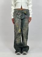 Hoe leuk is deze jeans met graffiti kettingen?!