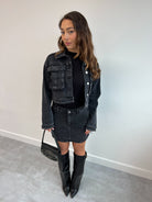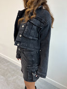 Wie schön ist diese Cargo-Jeansjacke?! Es passt perfekt zu unserem schwarzen Cargo-Jeansrock.