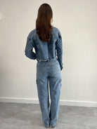 Wie schön ist diese Jeansjacke?! Es passt perfekt zu unserem Stretch-Cargo-Denim in Hellblau.