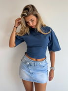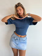 Hoe leuk is deze denim skort met cross waist?!